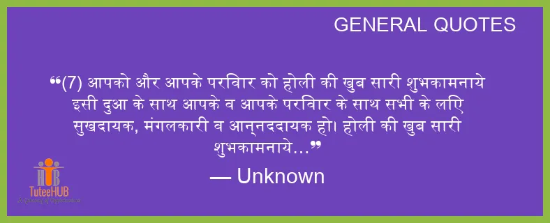 (7) आपको और आपके परिवार को होली की खुब सारी शुभकामनाये इसी दुआ के साथ आपके व आपके परिवार के साथ सभी के लिए सुखदायक, मंगलकारी व आन्नददायक हो। होली की खुब सारी शुभकामनाये…