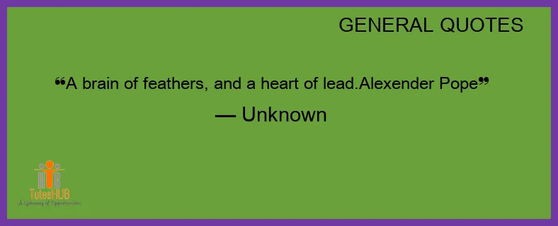A BRAIN of FEATHERS, and a HEART of lead.Alexender POPE