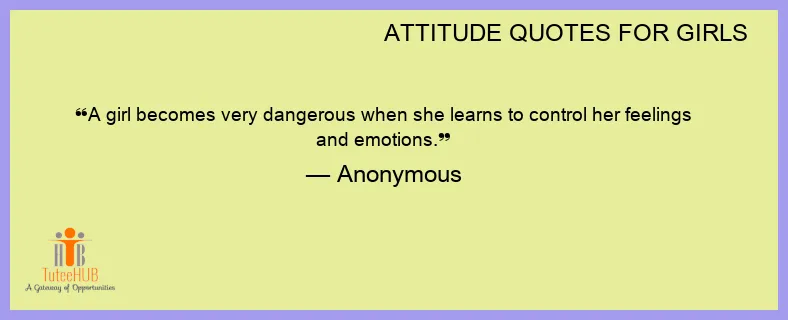 A girl becomes very dangerous when she learns to control her feelings and emotions.