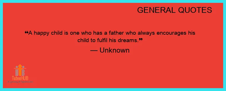 A HAPPY CHILD is one who has a father who ALWAYS encourages his child to fulfil his DREAMS.