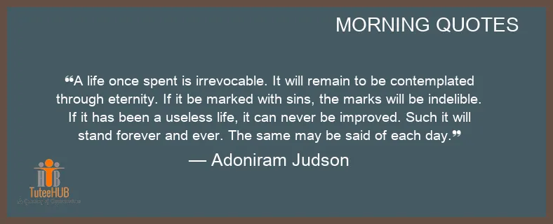 A life once spent is irrevocable. It will remain to be contemplated through ETERNITY. If it be marked with sins, the marks will be indelible. If it has been a useless life, it can never be improved. Such it will STAND forever and EVER. The same may be said of each DAY.