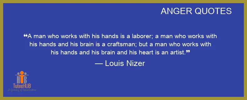 A MAN who works with his HANDS is a laborer; a man who works with his hands and his BRAIN is a craftsman; but a man who works with his hands and his brain and his heart is an artist.