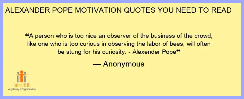 A person who is too nice an observer of the business of the crowd, like one who is too curious in observing the labor of bees, will often be stung for his curiosity. - Alexender Pope