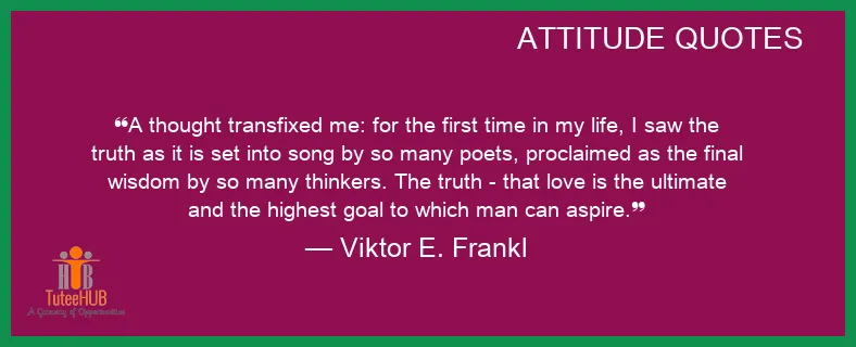 A thought transfixed me: for the first TIME in my life, I saw the TRUTH as it is set into SONG by so many poets, proclaimed as the FINAL wisdom by so many thinkers. The truth - that love is the ultimate and the highest goal to which man can aspire.
