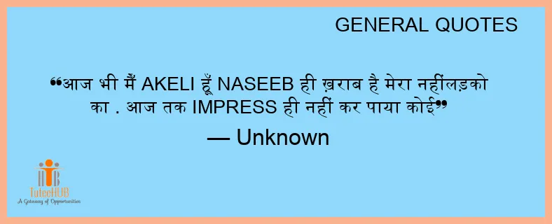 आज भी मैँ AKELI हूँ NASEEB ही ख़राब है मेरा नहींलड़को का . आज तक IMPRESS ही नहीं कर पाया कोई