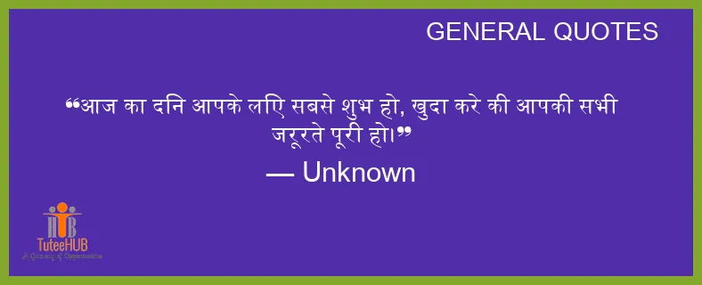 आज का दिन आपके लिए सबसे शुभ हो, खुदा करे की आपकी सभी जरूरते पूरी हो।