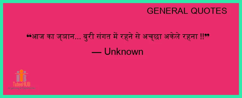 आज का ज्ञान... बुरी संगत में रहने से अच्छा अकेले रहना !!
