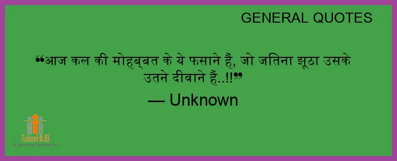 आज कल की मोहब्बत के ये फसाने हैं, जो जितना झूठा उसके उतने दीवाने हैं..!!