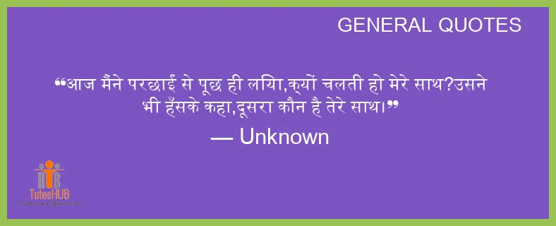 आज मैंने परछाईं से पूछ ही लिया,क्यों चलती हो मेरे साथ?उसने भी हँसके कहा,दूसरा कौन है तेरे साथ।
