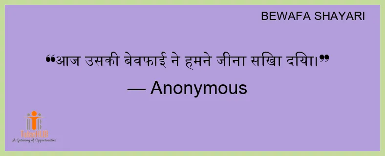 आज उसकी बेवफाई ने हमने जीना सिखा दिया।
