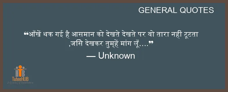 आँखें थक गई है आसमान को देखते देखते पर वो तारा नहीं टूटता ,जिसे देखकर तुम्हें मांग लूँ….