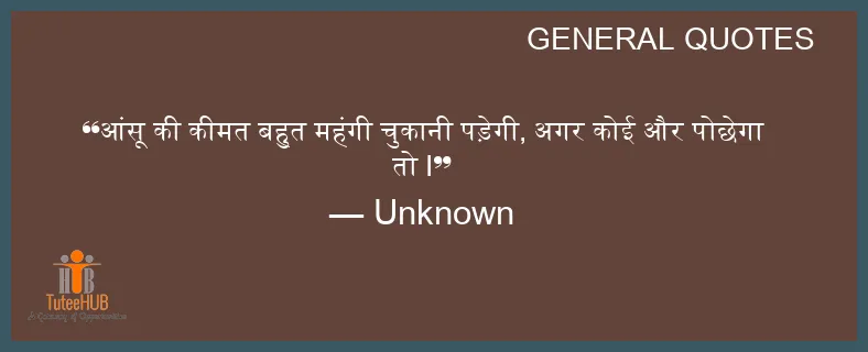 आंसू की कीमत बहुत महंगी चुकानी पड़ेगी, अगर कोई और पोछेगा तो I