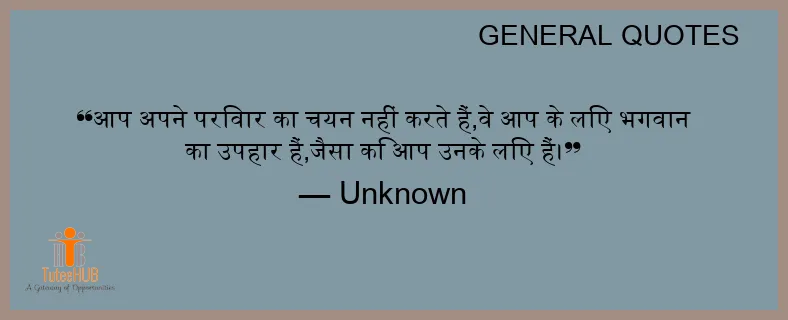 आप अपने परिवार का चयन नहीं करते हैं,वे आप के लिए भगवान का उपहार हैं,जैसा कि आप उनके लिए हैं।