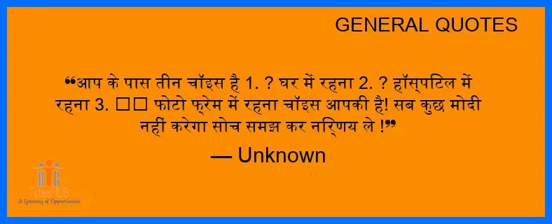 आप के पास तीन चॉइस है 1. ? घर में रहना 2. ? हॉस्पिटल में रहना 3. ⚰️ फोटो फ्रेम में रहना चॉइस आपकी है! सब कुछ मोदी नहीं करेगा सोच समझ कर निर्णय ले !