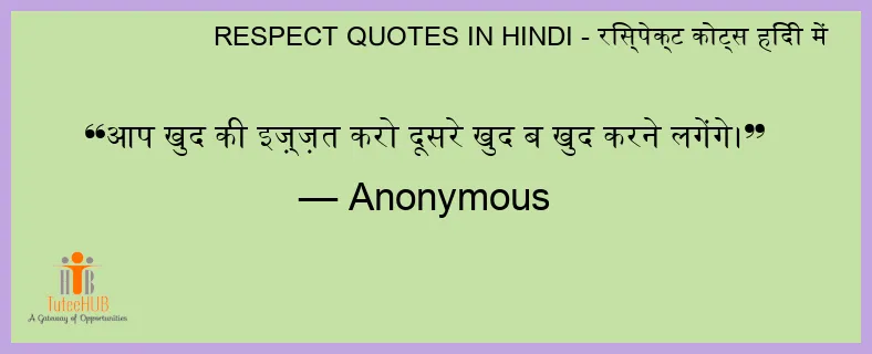 आप खुद की इज़्ज़त करो दूसरे खुद ब खुद करने लगेंगे।
