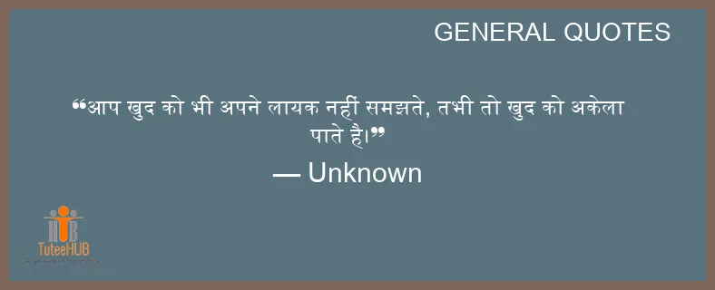 आप खुद को भी अपने लायक नहीं समझते, तभी तो खुद को अकेला पाते है।