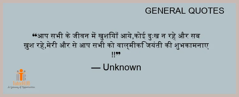 आप सभी के जीवन में खुशियाँ आये,कोई दुःख न रहे और सब ख़ुश रहे,मेरी और से आप सभी को वाल्मीकि जयंती की शुभकामनाए !!