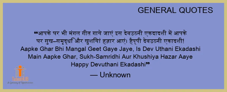 आपके घर भी मंगल गीत गाये जाएं इस देवउठनी एकदादशी में आपके घर सुख–समृद्धि और खुशियां हज़ार आएं। हैप्पी देवउठनी एकादशी! Aapke Ghar BHI Mangal Geet Gaye Jaye, Is Dev Uthani Ekadashi Main Aapke Ghar, Sukh-Samridhi Aur Khushiya Hazar Aaye HAPPY Devuthani Ekadashi