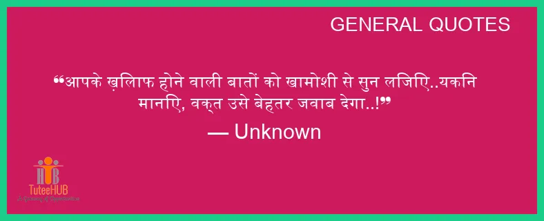आपके ख़िलाफ होने वाली बातों को खामोशी से सुन लिजिए..यकिन मानिए, वक्त उसे बेहतर जवाब देगा..!