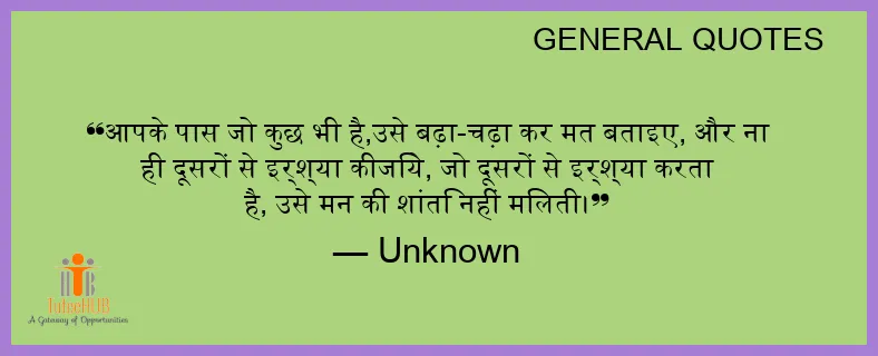 आपके पास जो कुछ भी है,उसे बढ़ा-चढ़ा कर मत बताइए, और ना ही दूसरों से इर्श्या कीजिये, जो दूसरों से इर्श्या करता है, उसे मन की शांति नहीं मिलती।