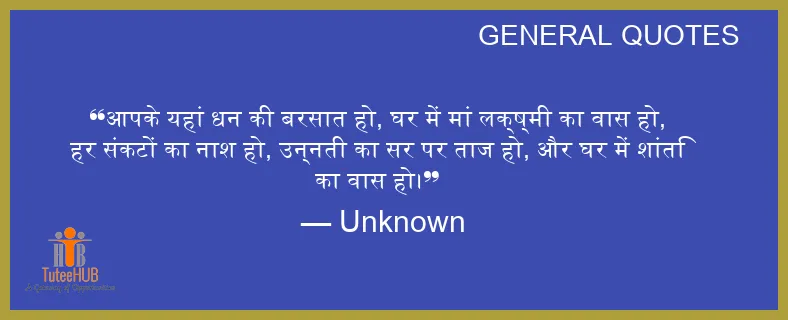 आपके यहां धन की बरसात हो, घर में मां लक्ष्मी का वास हो, हर संकटों का नाश हो, उन्नती का सर पर ताज हो, और घर में शांति का वास हो।