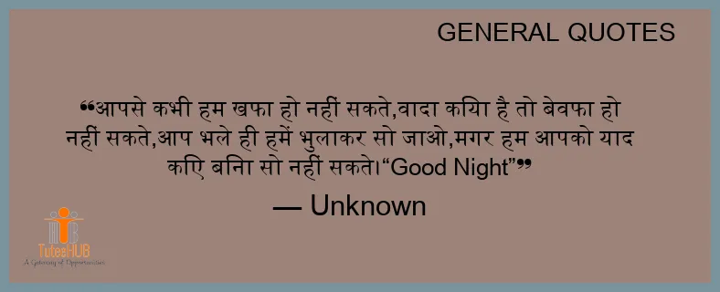 आपसे कभी हम खफा हो नहीं सकते,वादा किया है तो बेवफा हो नहीं सकते,आप भले ही हमें भुलाकर सो जाओ,मगर हम आपको याद किए बिना सो नहीं सकते।“Good Night”