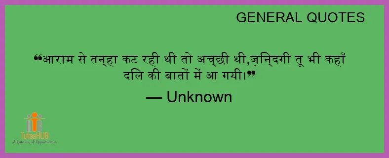 आराम से तन्हा कट रही थी तो अच्छी थी,ज़िन्दगी तू भी कहाँ दिल की बातों में आ गयी।