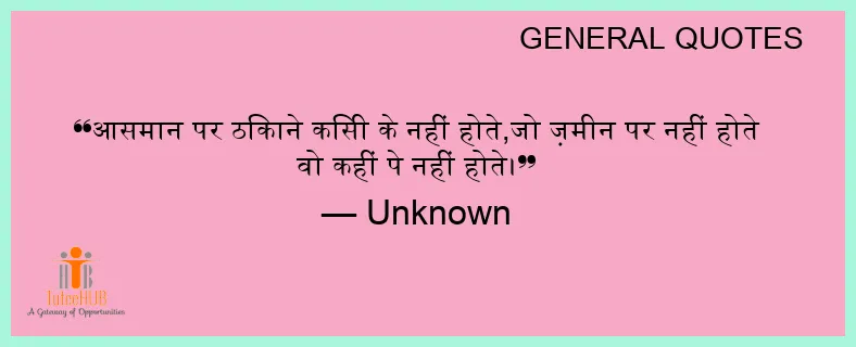 आसमान पर ठिकाने किसी के नहीं होते,जो ज़मीन पर नहीं होते वो कहीं पे नहीं होते।