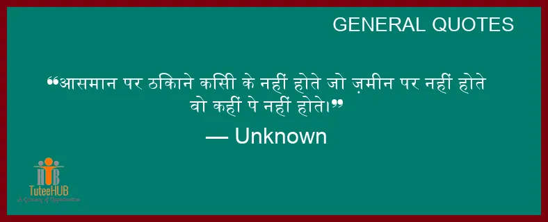 आसमान पर ठिकाने किसी के नहीं होते जो ज़मीन पर नहीं होते वो कहीं पे नहीं होते।