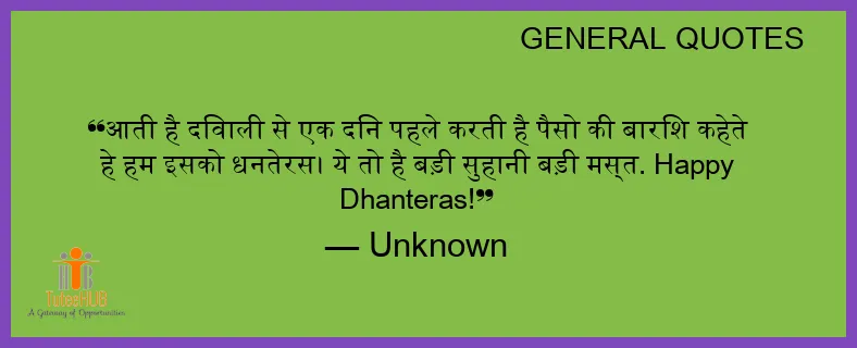 आती है दिवाली से एक दिन पहले करती है पैसो की बारिश कहेते हे हम इसको धनतेरस। ये तो है बड़ी सुहानी बड़ी मस्त. Happy Dhanteras!