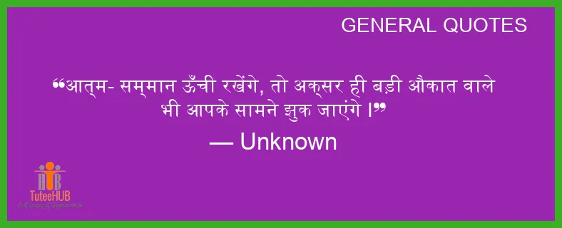 आत्म- सम्मान ऊँची रखेंगे, तो अक्सर ही बड़ी औकात वाले भी आपके सामने झुक जाएंगे I