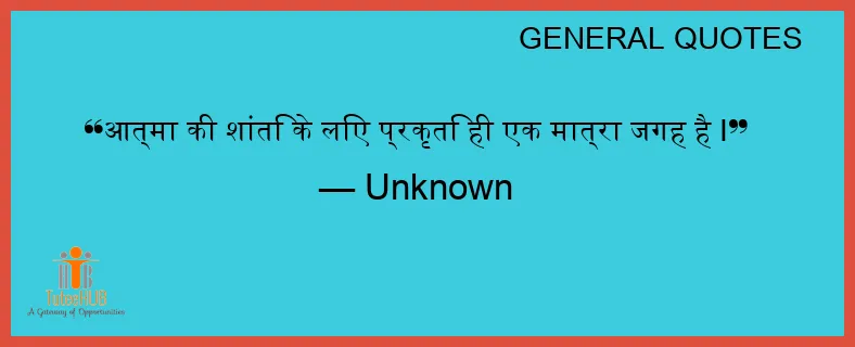 आत्मा की शांति के लिए प्रकृति ही एक मात्रा जगह है I