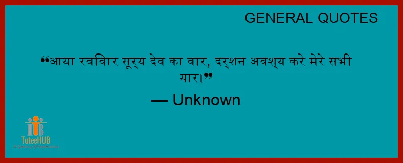 आया रविवार सूर्य देव का वार, दर्शन अवश्य करे मेरे सभी यार।