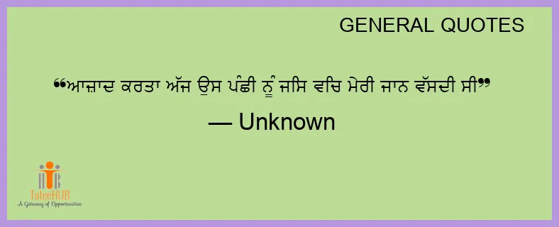 ਆਜ਼ਾਦ ਕਰਤਾ ਅੱਜ ਉਸ ਪੰਛੀ ਨੂੰ ਜਿਸ ਵਿਚ ਮੇਰੀ ਜਾਨ ਵੱਸਦੀ ਸੀ