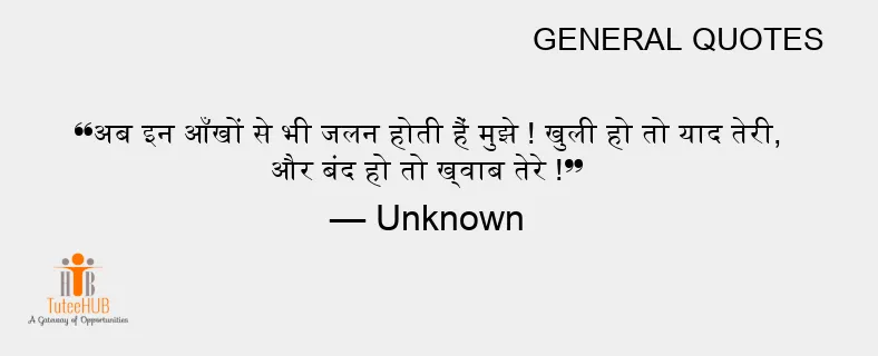 अब इन आँखों से भी जलन होती हैं मुझे ! खुली हो तो याद तेरी, और बंद हो तो ख्वाब तेरे !