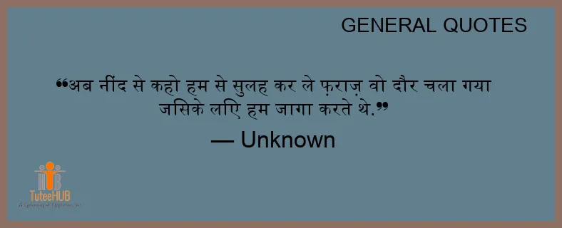 अब नींद से कहो हम से सुलह कर ले फ़राज़ वो दौर चला गया जिसके लिए हम जागा करते थे.