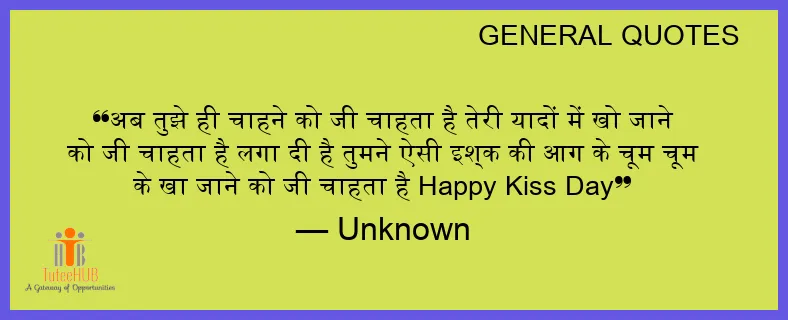 अब तुझे ही चाहने को जी चाहता है तेरी यादों में खो जाने को जी चाहता है लगा दी है तुमने ऐसी इश्क की आग के चूम चूम के खा जाने को जी चाहता है Happy Kiss Day