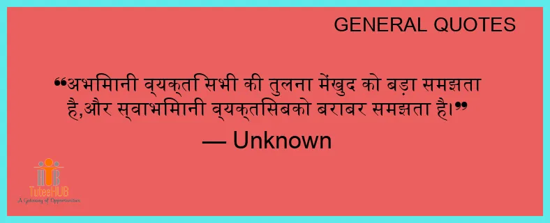 अभिमानी व्यक्ति सभी की तुलना मेंखुद को बड़ा समझता है,और स्वाभिमानी व्यक्तिसबको बराबर समझता है।