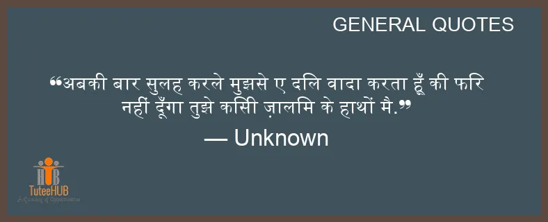 अबकी बार सुलह करले मुझसे ए दिल वादा करता हूँ की फिर नहीं दूँगा तुझे किसी ज़ालिम के हाथों मै.