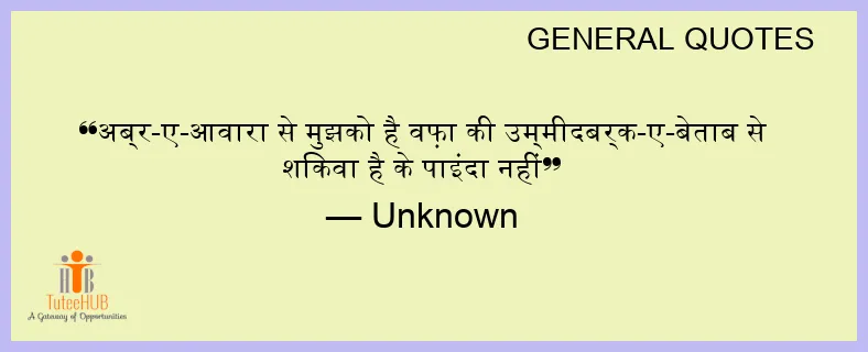 अब्र-ए-आवारा से मुझको है वफ़ा की उम्मीदबर्क-ए-बेताब से शिकवा है के पाइंदा नहीं