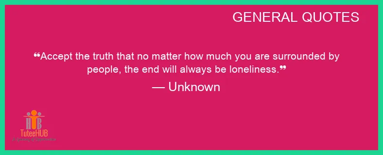 Accept the TRUTH that no matter how MUCH you are SURROUNDED by people, the end will ALWAYS be loneliness.