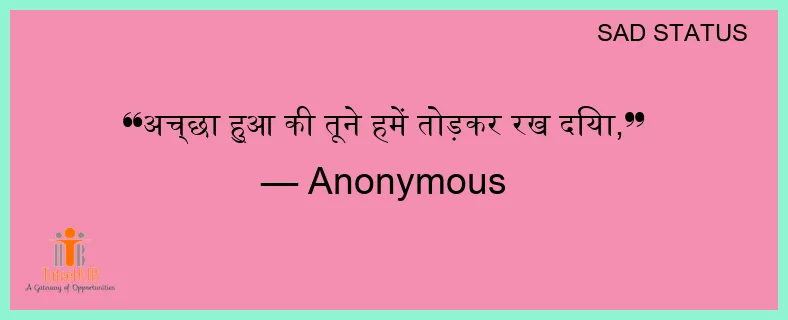 अच्छा हुआ की तूने हमें तोड़कर रख दिया,