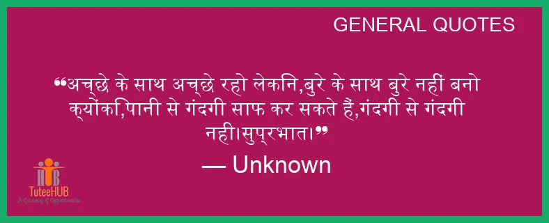 अच्छे के साथ अच्छे रहो लेकिन,बुरे के साथ बुरे नहीं बनो क्योंकि,पानी से गंदगी साफ कर सकते हैं,गंदगी से गंदगी नही।सुप्रभात।