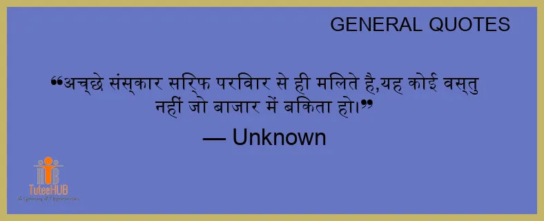 अच्छे संस्कार सिर्फ परिवार से ही मिलते है,यह कोई वस्तु नहीं जो बाजार में बिकता हो।