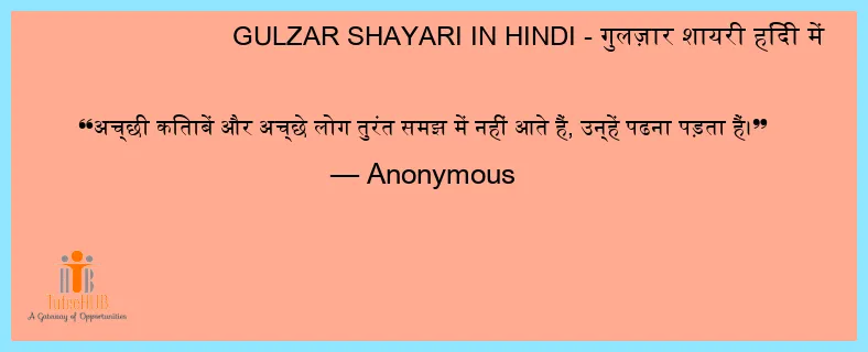 अच्छी किताबें और अच्छे लोग तुरंत समझ में नहीं आते हैं, उन्हें पढना पड़ता हैं।
