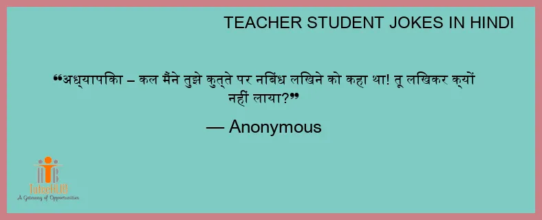 अध्यापिका – कल मैंने तुझे कुत्ते पर निबंध लिखने को कहा था! तू लिखकर क्यों नहीं लाया?