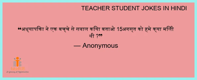 अध्यापिका ने एक बच्चे से सवाल किया बताओ 15अगस्त को हमे क्या मिली थी ?