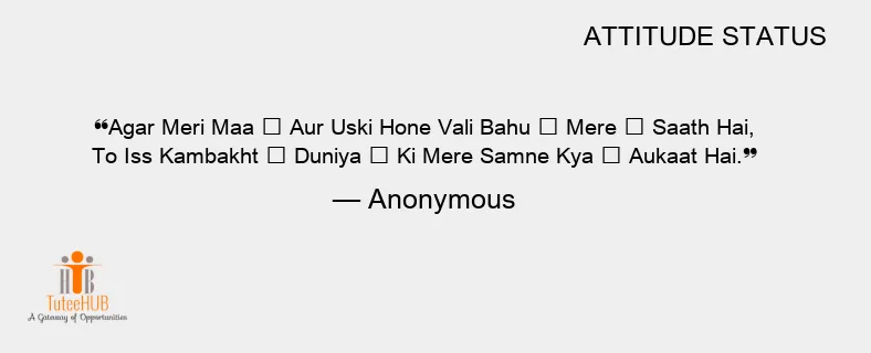 Agar Meri Maa 🙎 Aur Uski Hone Vali Bahu 👼 Mere 🚶 Saath Hai, To Iss Kambakht 😈 Duniya 🌎 Ki Mere Samne Kya ❓ Aukaat Hai.