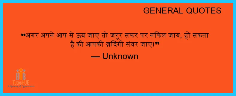 अगर अपने आप से ऊब जाए तो जरूर सफर पर निकल जाय, हो सकता है की आपकी ज़िंदगी संवर जाए।