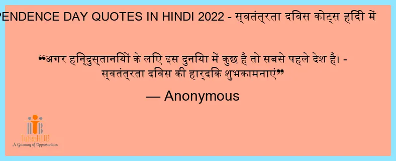 अगर हिन्दुस्तानियों के लिए इस दुनिया में कुछ है तो सबसे पहले देश है। - स्वतंत्रता दिवस की हार्दिक शुभकामनाएं